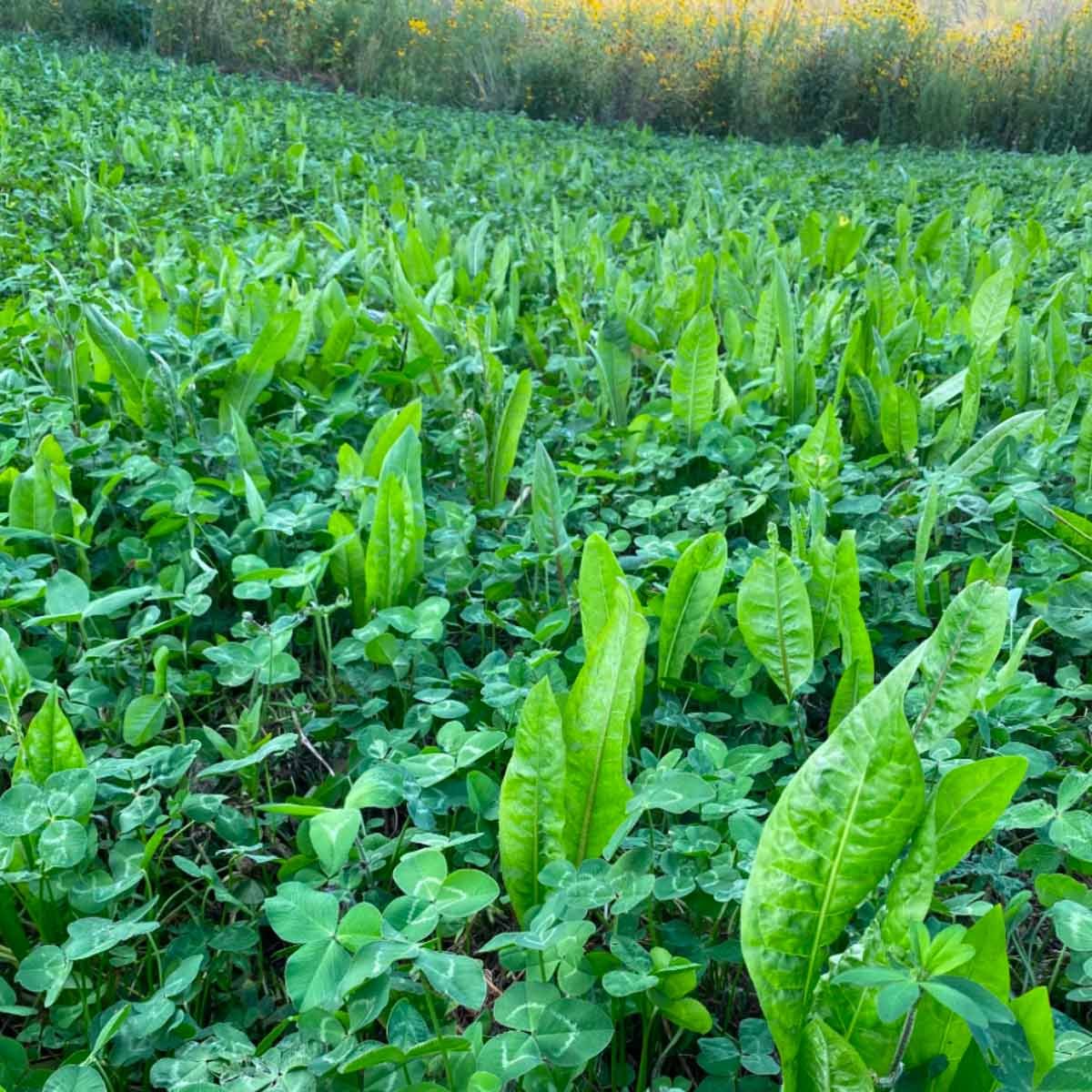 Clover is a popular component in perennial plots, valued for its ground coverage and regrowth potential.